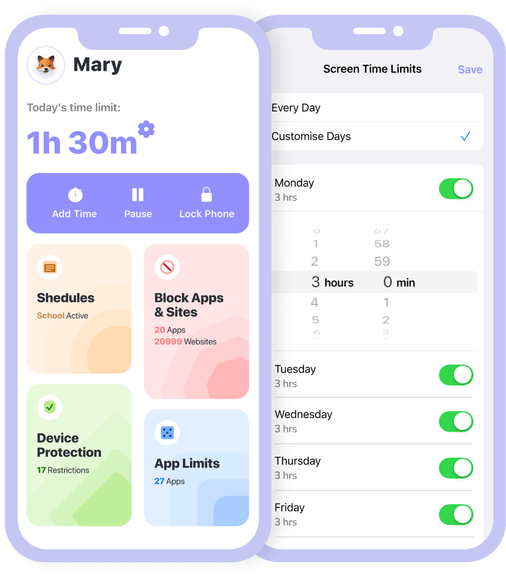 Keep your child's focus on studying by blocking distracting apps like TikTok and games, but allowing educational apps and sites like Books, Calculator.